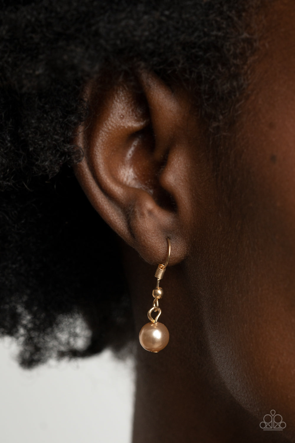 A royal collection of golden brown pearls and glassy crystal-like beads swing from the bottom of a dainty gold chain, creating a glamorously clustered fringe below the collar. Features an adjustable clasp closure.