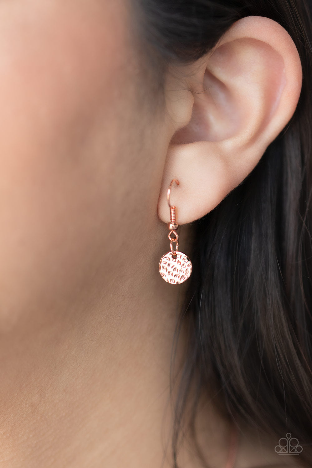 Hammered shiny copper discs slide along a rounded snake chain, overlapping into a blinding statement piece below the collar. Features an adjustable clasp closure.